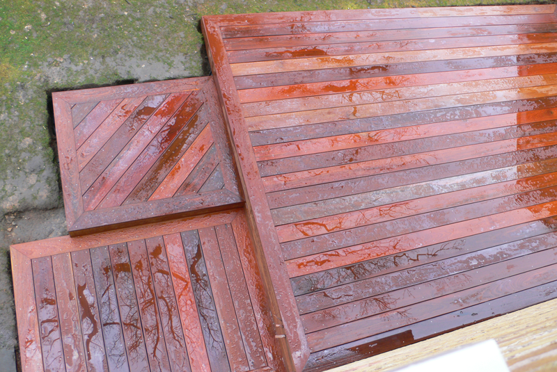 The tiles here were all handmade by a ceramist who had done some restoration pieces for Peacock House, and the crackled glass glaze on each one differs slightly. The are close fitted, various sizes, in brick bond patterns and capped with a stained oak picture rail.